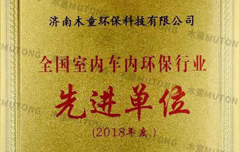濟南木童環保科技有限公司榮獲2018年度全國室內車內環保行業先進單位